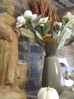 I added rust-colored wheat to the flower vase, a few white pumpkins and the candle on the Corinthian column. And that was it!
